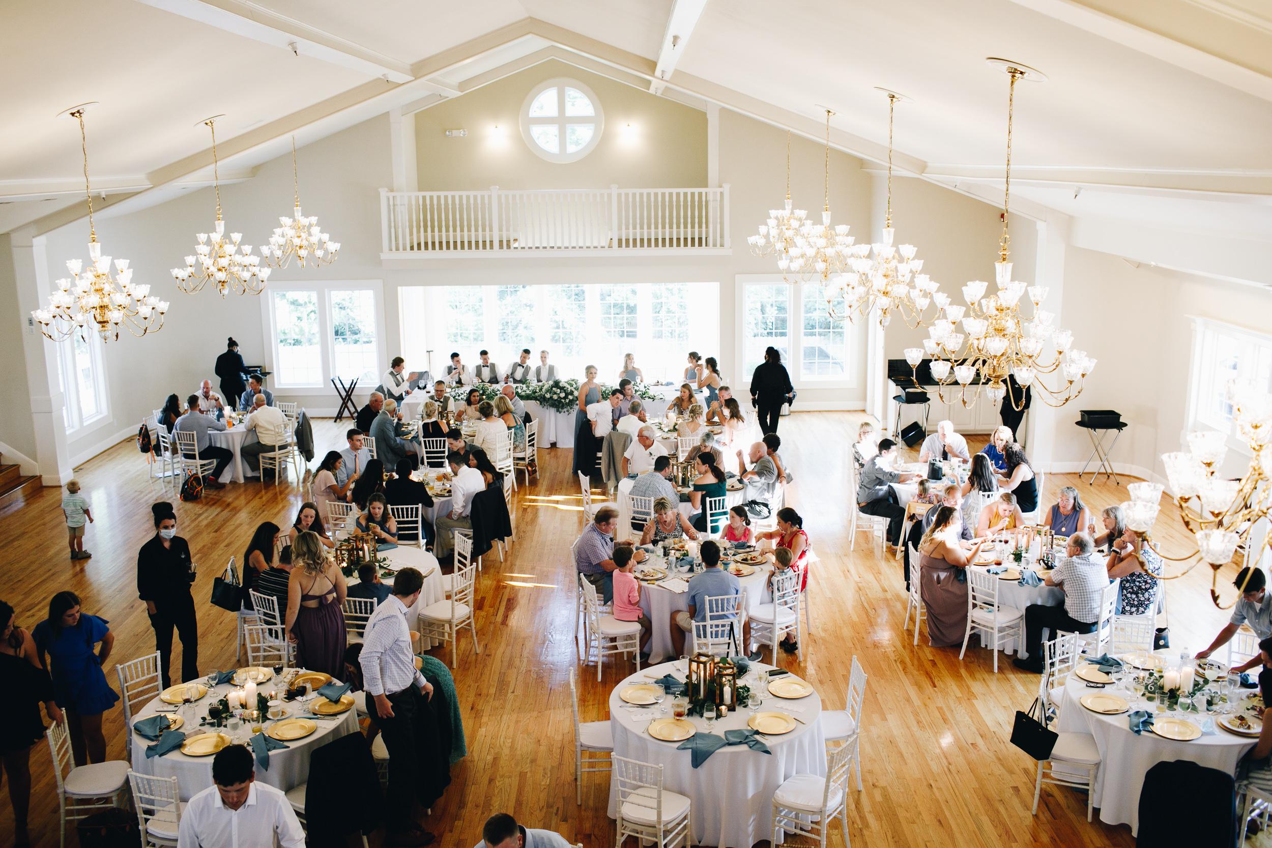 The inside of the barn is a little tight fitting for 200 guests, so I would recommend doing seating in and outdoors, but its perfect for any number under that! The grass and the stage were the perfect setup in our early-August wedding! They had fans for the inside or wherever we wanted them.