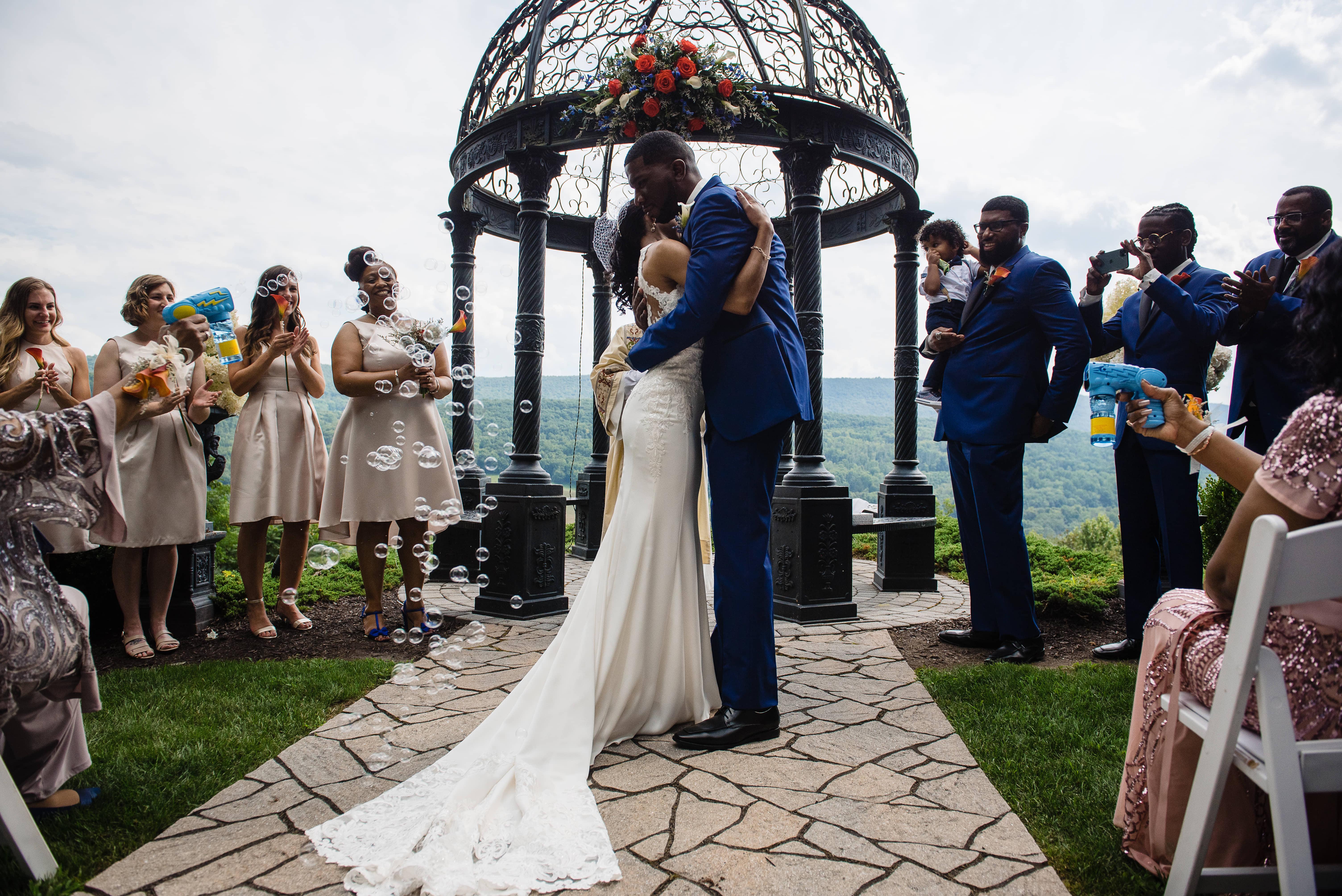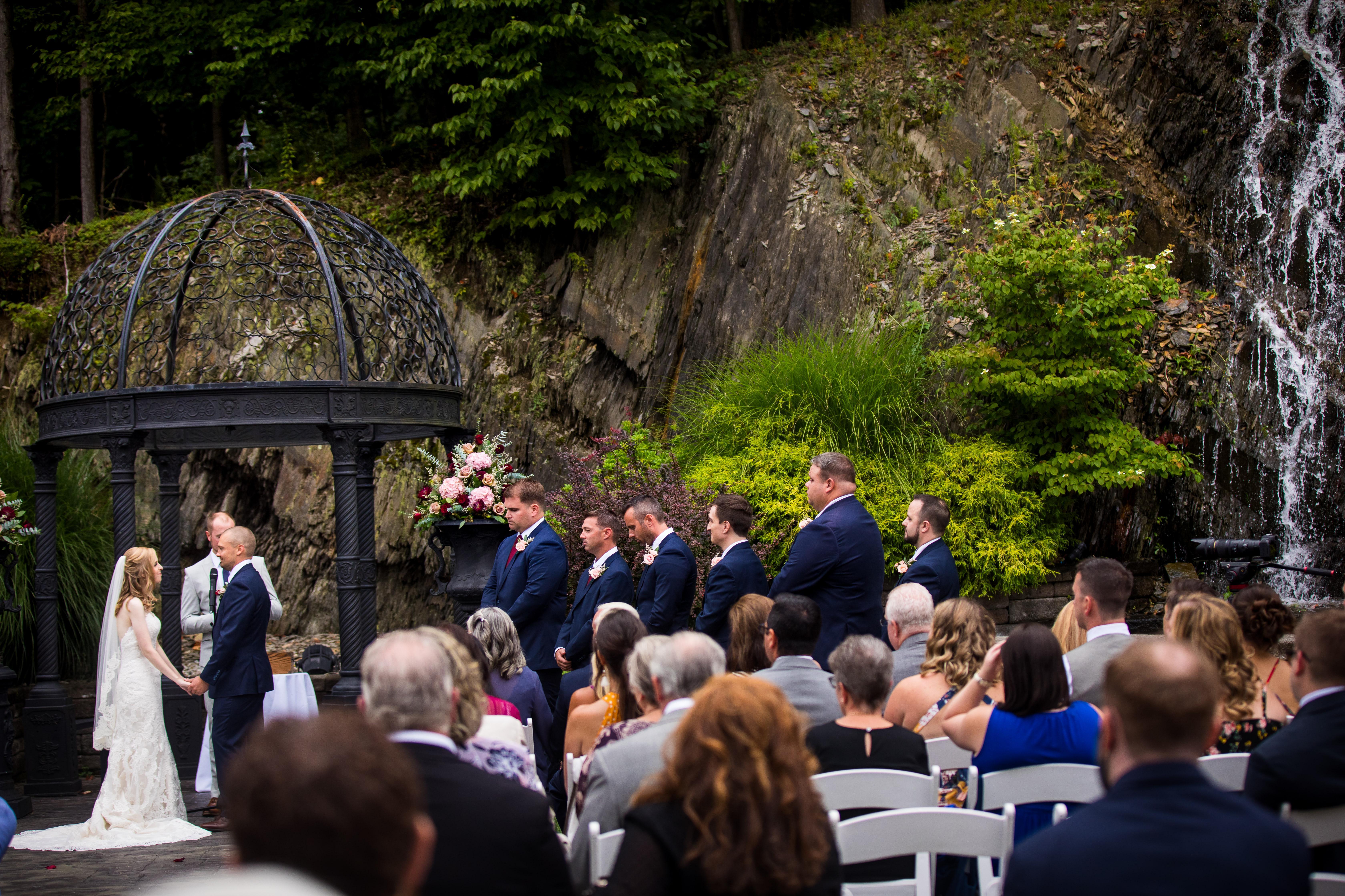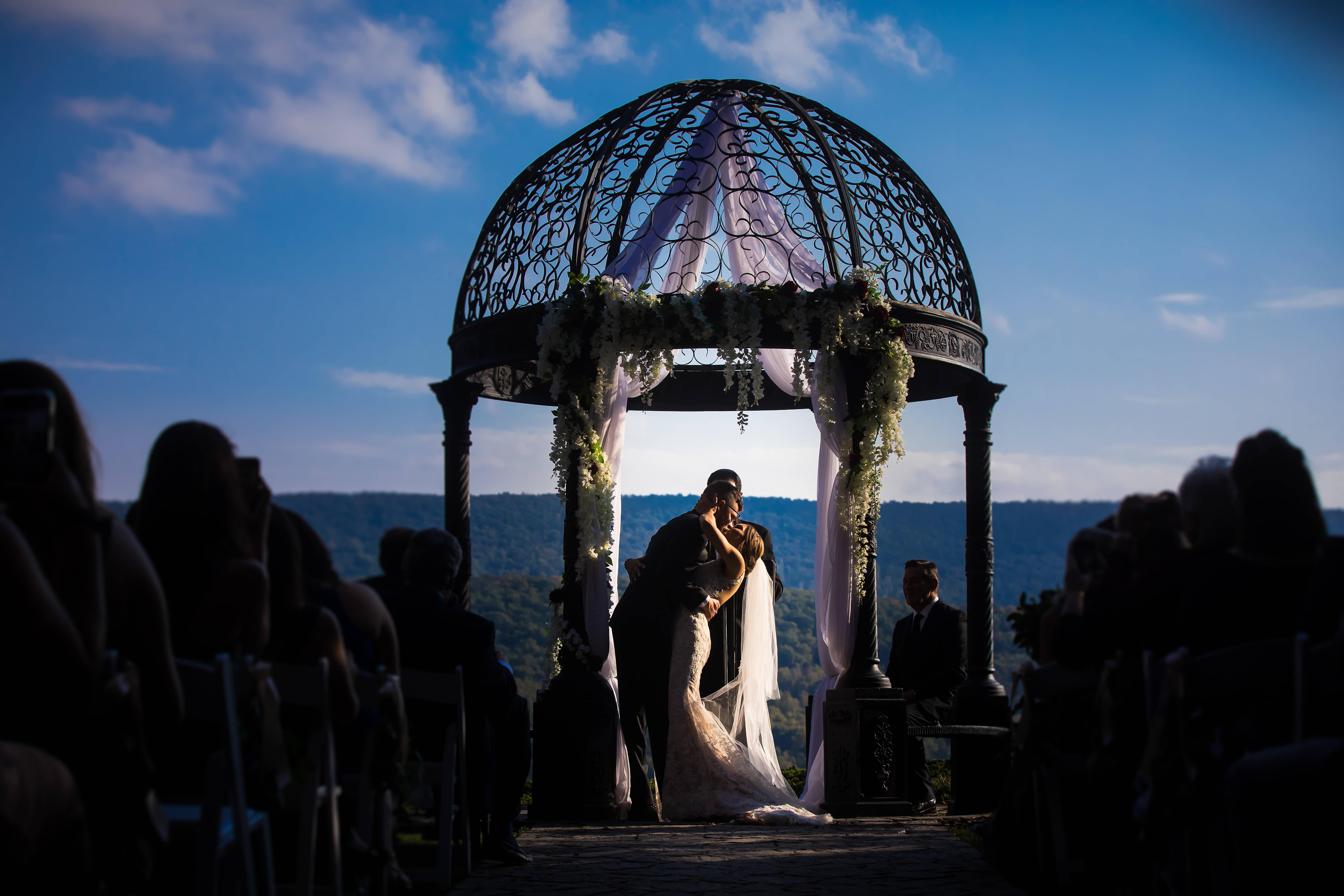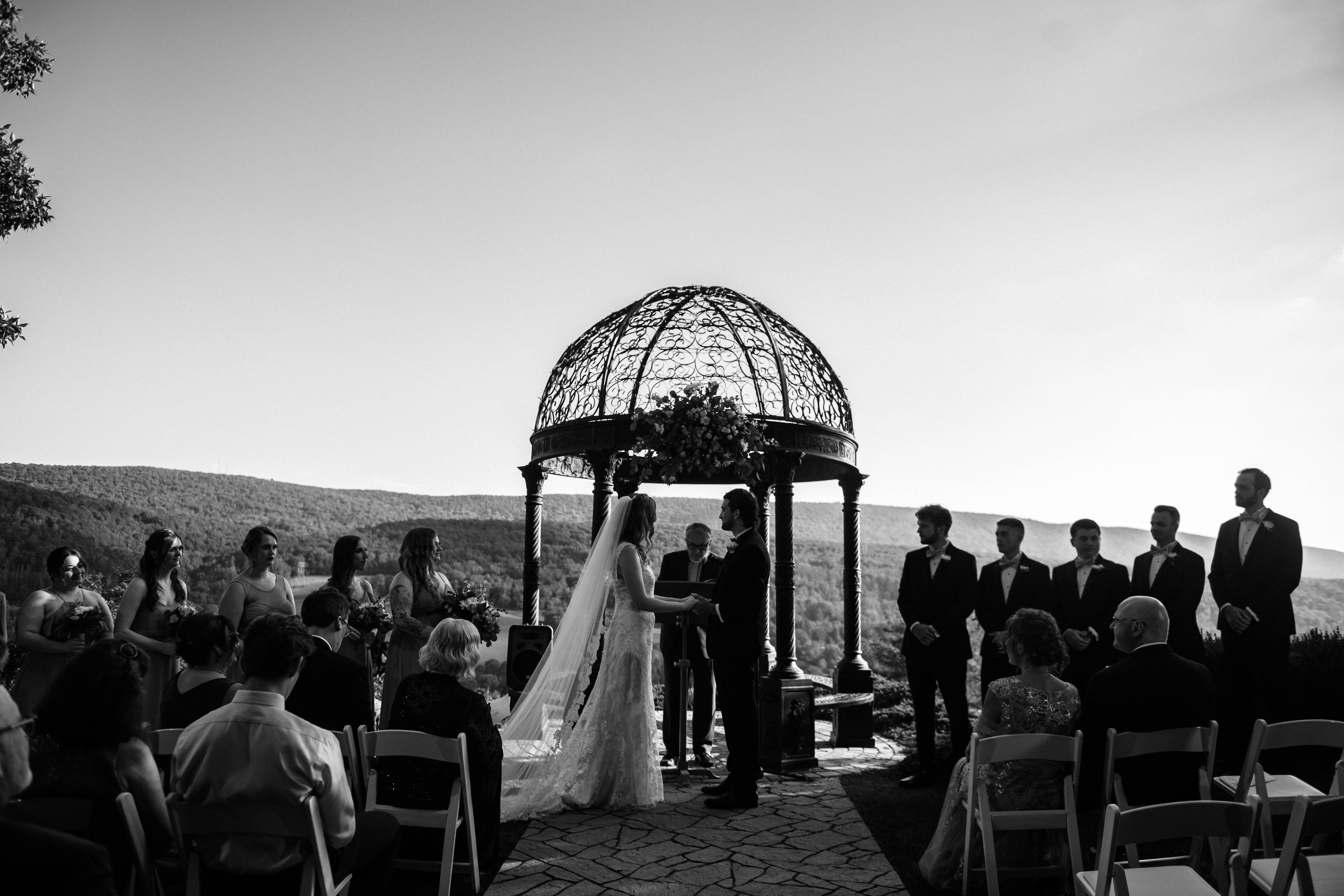 Crestview Chapel offers awe-inspiring views for every one of your 175 to 250 guests. The wrought iron gazebo sits at the edge of the mountain ridge, offering remarkable views of the Cherry Valley Wildlife Sanctuary below and vistas stretching from Delaware Water Gap to Wind Gap and beyond.