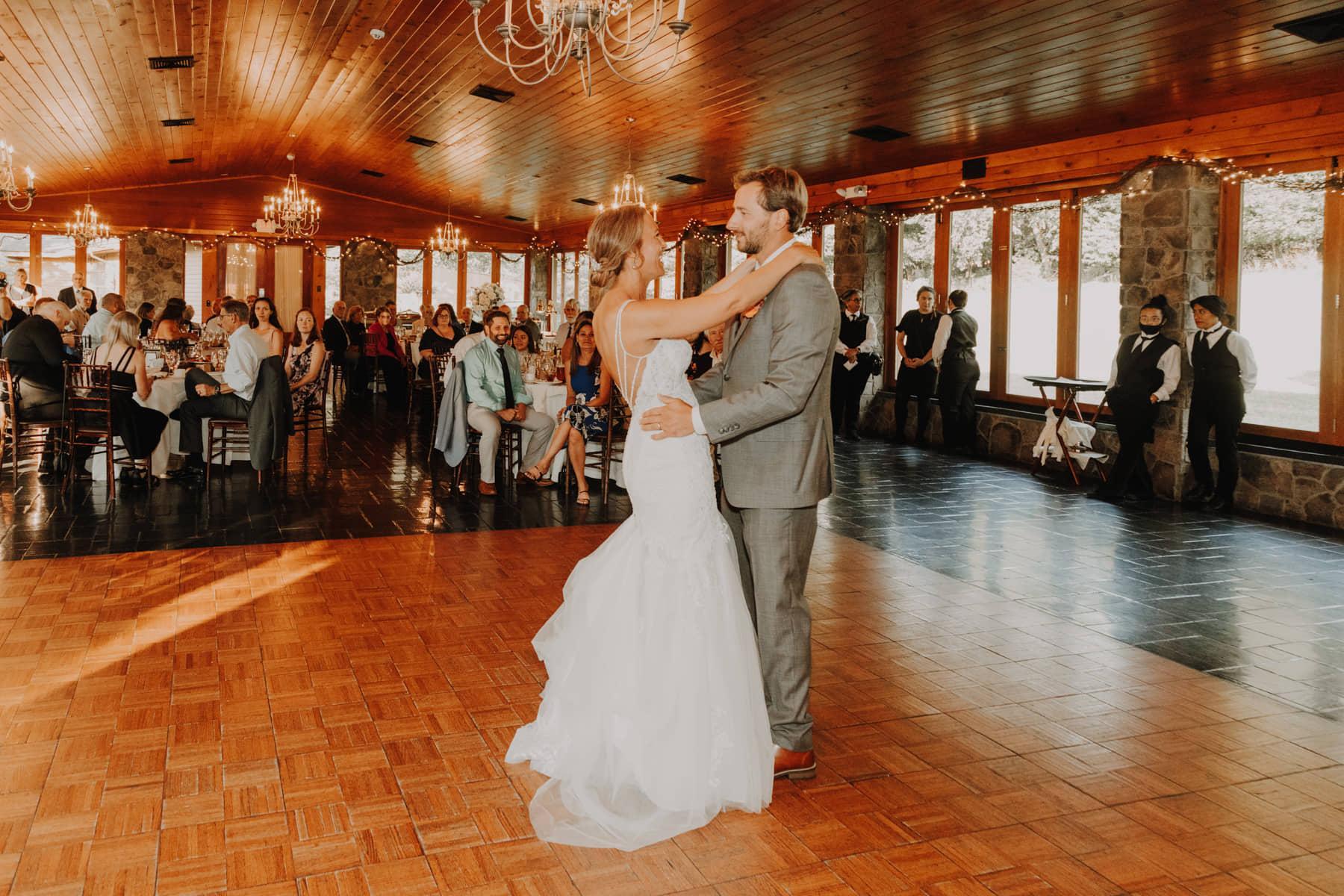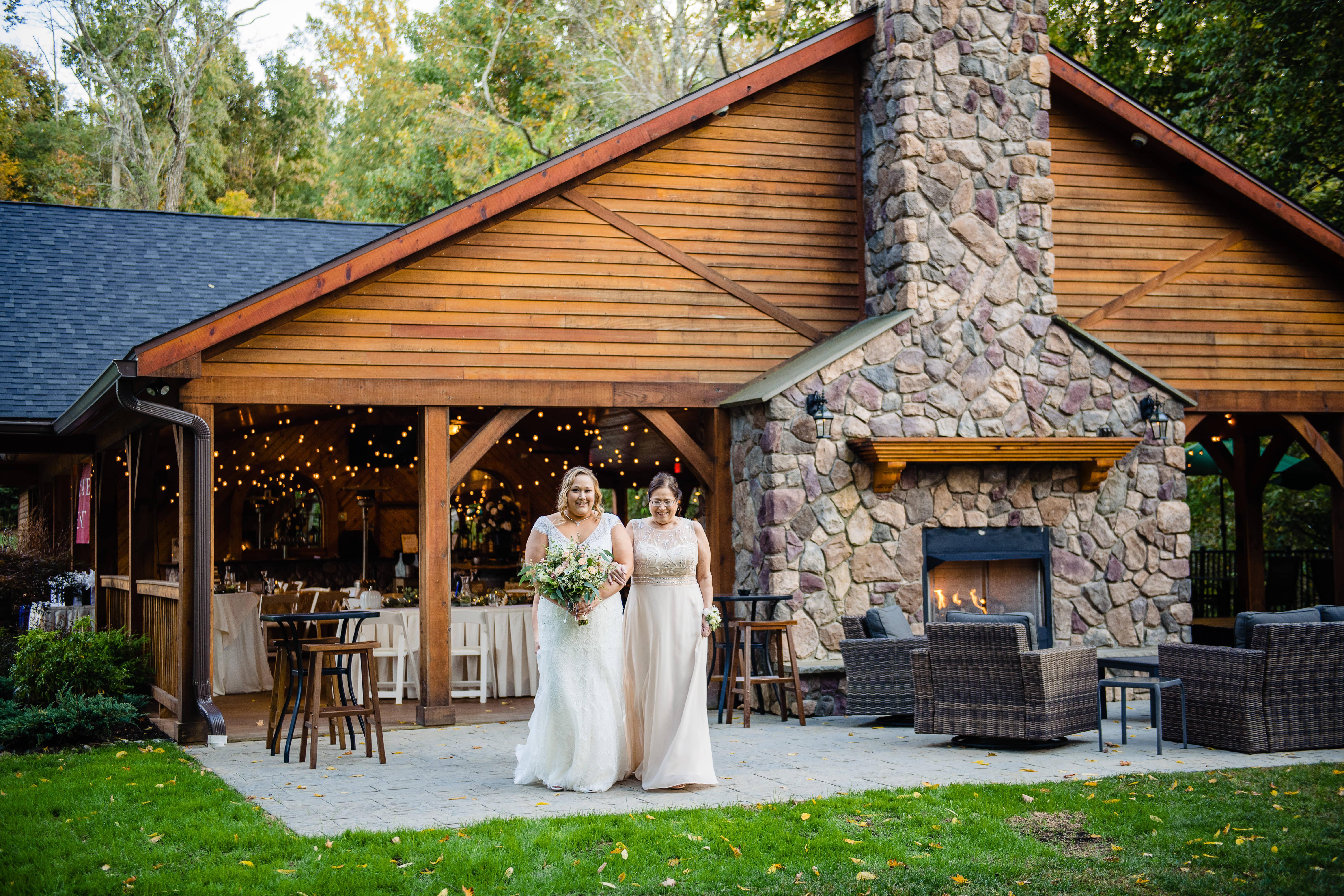 Ridgecrest also features an open-air pavilion to host your ceremony or cocktail hour undercover while keeping an outdoor experience without the worries of weather. Cocktail hour is accented by a 40’ stone bar, two stone fireplaces, and plenty of room for mingling with guests indoors and outdoors under its pavilion.