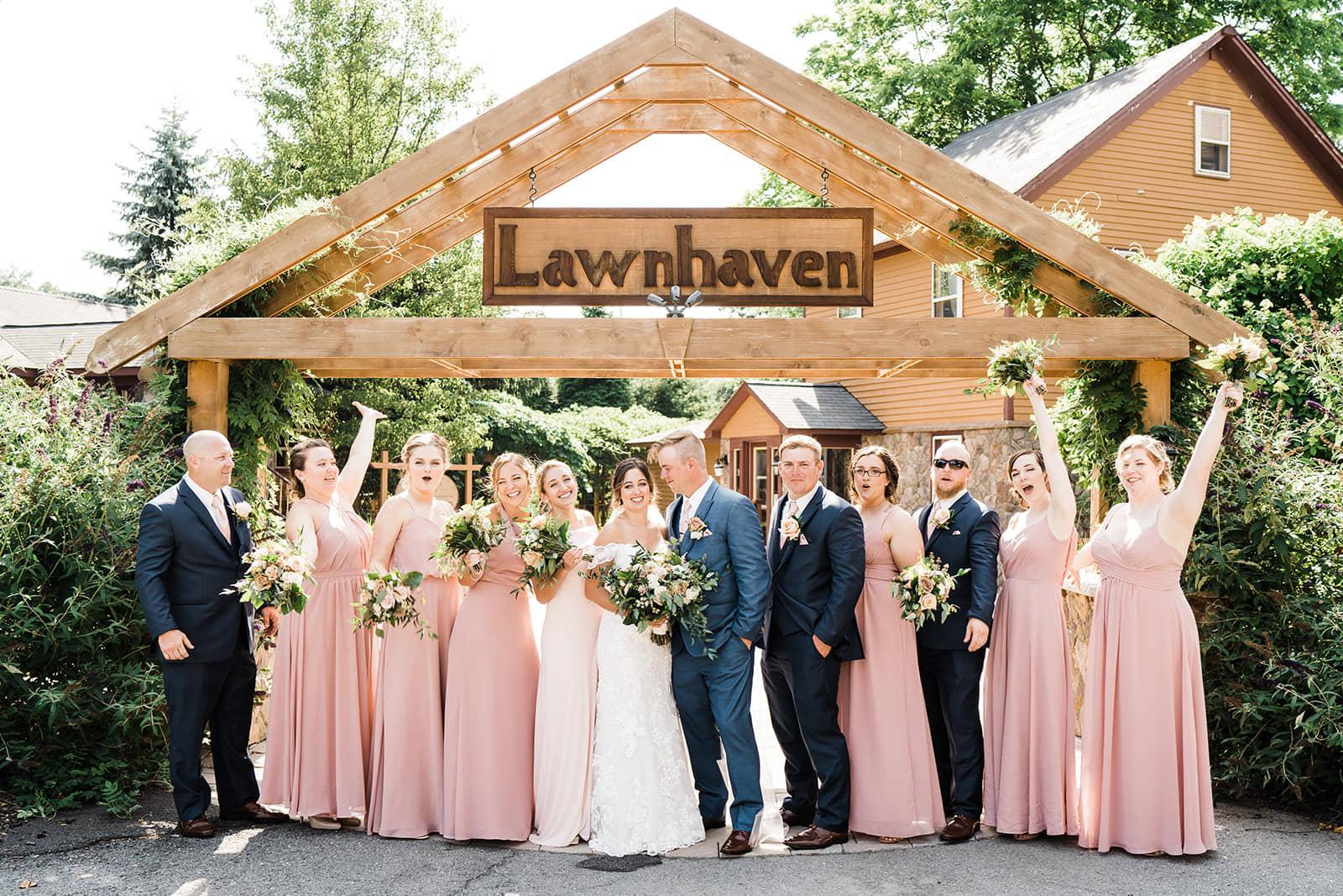 Lawnhaven’s exquisitely appointed Evergreen Garden provides the perfect site for your ceremony. Complete with a stone gazebo, fire columns, and a three-tier water feature. The wedding ceremony is celebrated on one of two grand lawns. An event at Lawnhaven requires a minimum of 75 guests, while it graciously accommodates a maximum of 150 for a traditional served meal; 200 for a cocktail reception.