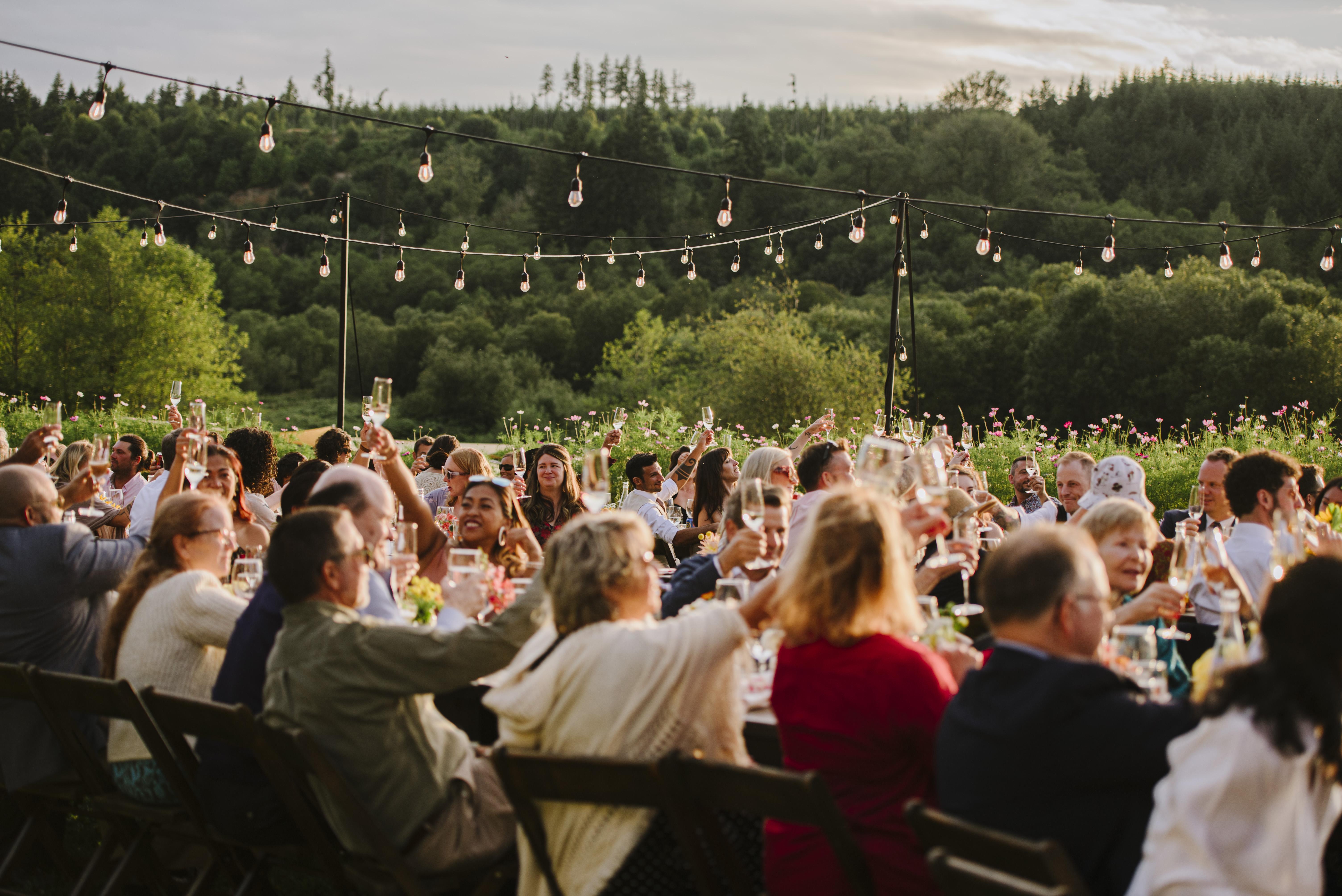 “We live in Seattle and wanted to get married in the city, and were drawn to industrial type venues. I think all in all we toured 15 venues across different Seattle neighborhoods and ended up choosing WithinSodo for it’s versatility in space, it’s already existing beauty (hint-budget brides- you really don’t need much additional decor unless you really want it), the welcoming staff, the easy kitchen for caterers, its size being large enough for our group but small enough to still feel intimate (we invited 200, 140 showed) and the opportunity to have some outdoor space on our wedding day. The energy in this venue is electric and we felt it each time we visited. While needing to use the in house bar at first felt like a con because it can be more expensive than doing it on your own-in the end became a pro as the ease of having everything taken care of by talented professionals (our drinks were amazing, the bar staff even worked with us to create a secret cocktail on the menu) was well worth it-and the cost was much lower than we expected given our friend group of happy drinkers. We loved everything about spending our wedding day at within Sodo from the ambiance and the slow reveal of different rooms in the space and especially the rooftop dance party and we’ll be forever grateful that we chose this space.